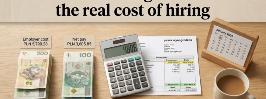 Минимальная зарплата 4 806 зл брутто — это 5 790,28 зл расхода работодателя и 3 605,85 зл нетто работника. Проверьте подписание допсоглашений, обновление системы расчёта зарплат и освобождения от FP для работников 55+/60+. Спланируйте бюджет на 2026 год с учётом PPK и грядущих изменений по директиве ЕС.